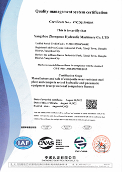 揚州中茂液壓機械有限公司是一家專業(yè)研發(fā)和生產(chǎn)液壓成套設備和耐磨材料的公司,公司位于江蘇省揚州市。公司現(xiàn)有各類技術(shù)員工80余人,耐磨復合鋼板具有年產(chǎn)量80000平方米的生產(chǎn)能力,焊接材料具有年產(chǎn)量5000噸的生產(chǎn)能力。